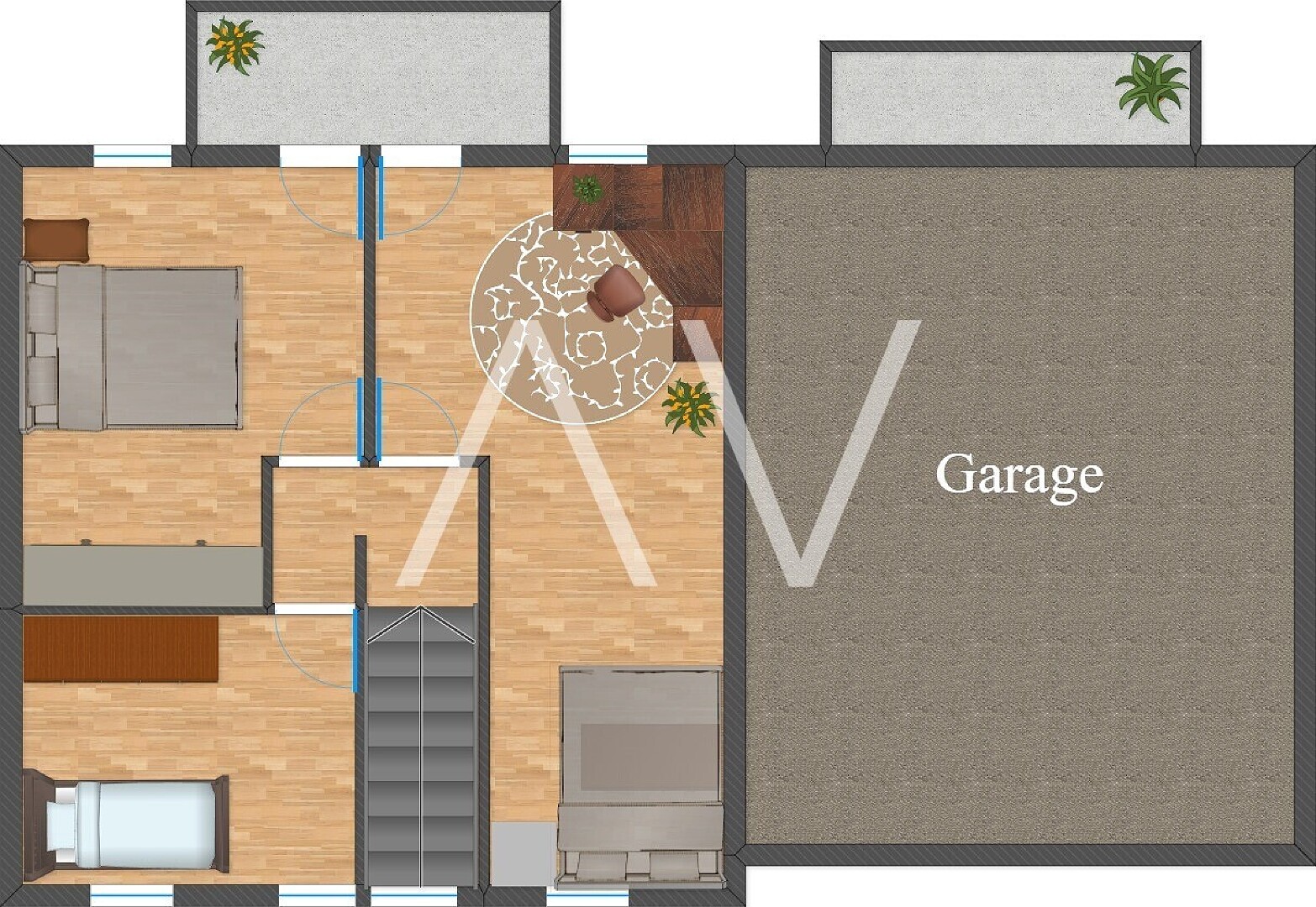 Zudem verfügt die Immobilie über zwei geräumige Keller und eine 34m² große Garage.
