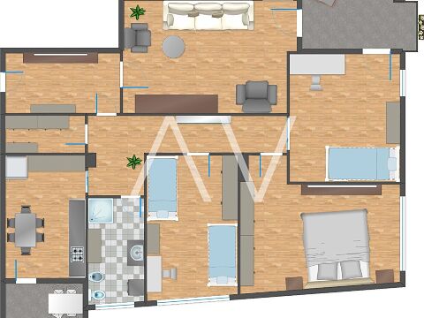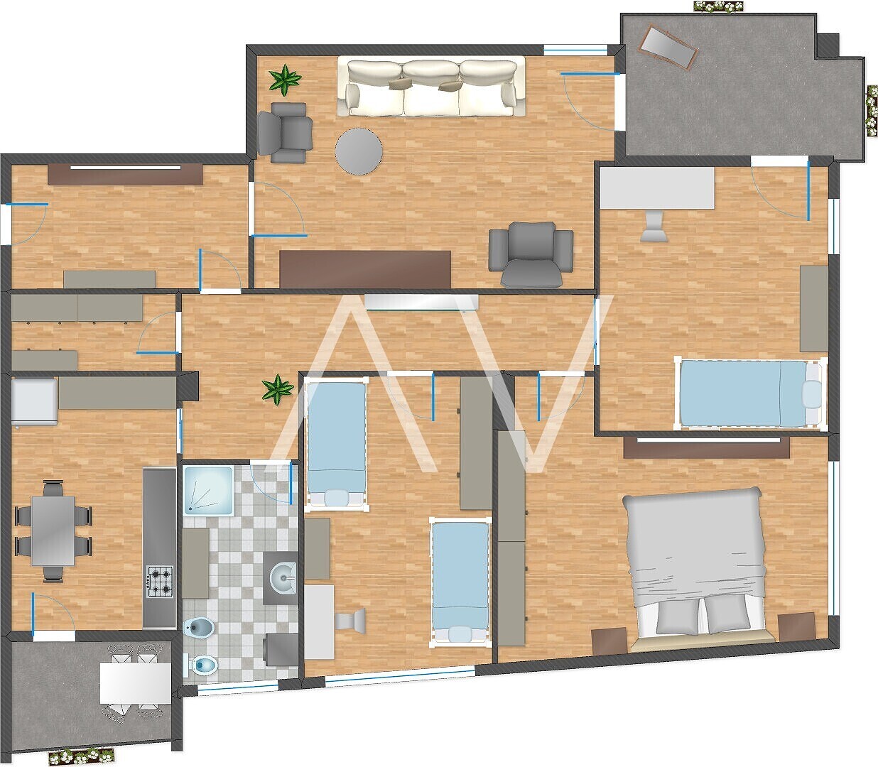 Diese Lösung ist ideal für Familien mit Bedarf an großzügigen und flexibel nutzbaren Räumen, für Personen im Homeoffice mit Wunsch nach einem separaten Arbeitszimmer oder für Paare, die eine helle und gut strukturierte Wohnung suchen, die nach eigenen Vorstellungen renoviert und personalisiert werden kann.