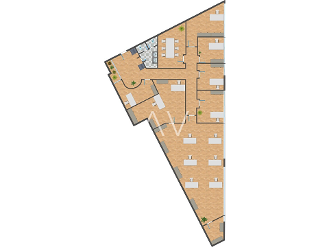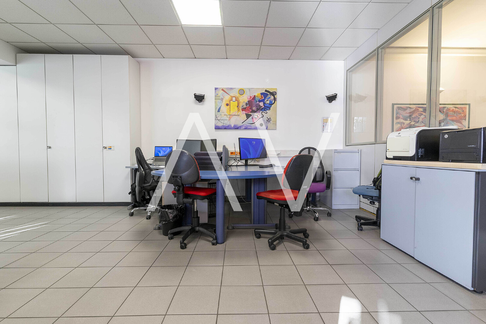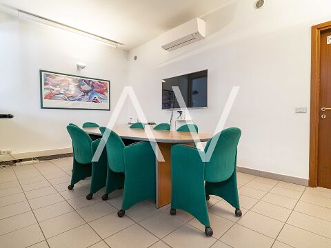Die Büroeinheit verfügt über eine Nettofläche von 275 m² und überzeugt durch eine funktionale und vielseitige Raumaufteilung. Insgesamt stehen sechs separate Büroräume, ein großzügiger Open-Space-Bereich sowie ein Konferenzsaal zur Verfügung, der sich ideal für Meetings, Schulungen oder Präsentationen eignet. Ergänzt wird das Raumangebot durch zwei WCs sowie einen praktischen Abstellraum.