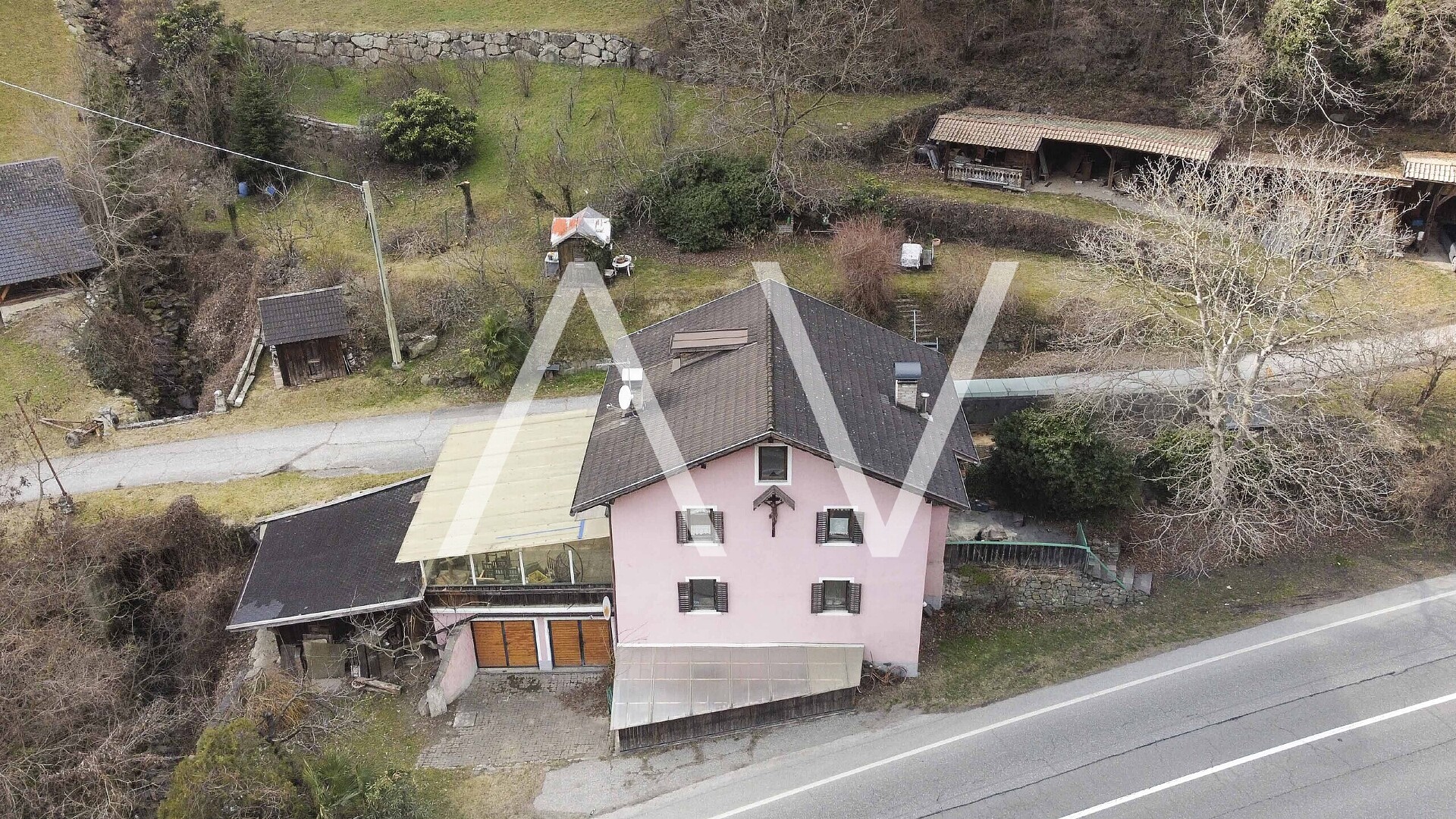 Dieses Wohnhaus liegt an der Straße zwischen Atzwang und Kollmann und verfügt über eine Wiesenfläche von 2.035 m².