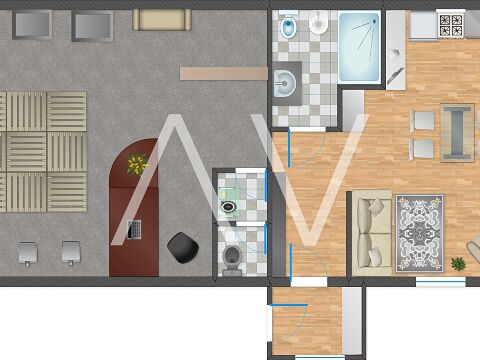 Die Immobilie besteht aus einem Geschäft, einem Monolokal und einer Duplexwohnung. Das Geschäft hat eine Größe von 41 m2 und verfügt zudem über ein angrenzendes Magazin, der selben Größe.