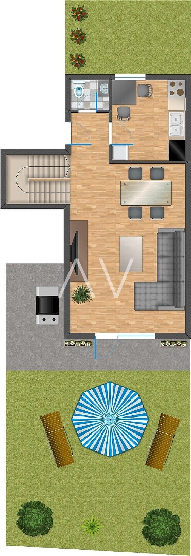 Zum Verkauf steht ein Reihenhaus in Auer, das in einer sehr ruhigen Lage liegt. Das 1995 erbaute Haus verfügt über vier Etagen und bietet Platz und Komfort für die ganze Familie. Im Untergeschoss befinden sich eine große Garage und zwei geräumige Keller, die sich perfekt für die Lagerung von Gegenständen oder Ausrüstung eignen. Im Erdgeschoss führt eine einladender Eingangsbereich zu einem Gäste-WC, einer gut ausgestatteten Küche und einem hellen Wohnzimmer mit Ausgang zum privaten Garten, ideal zum Entspannen oder Essen im Freien.