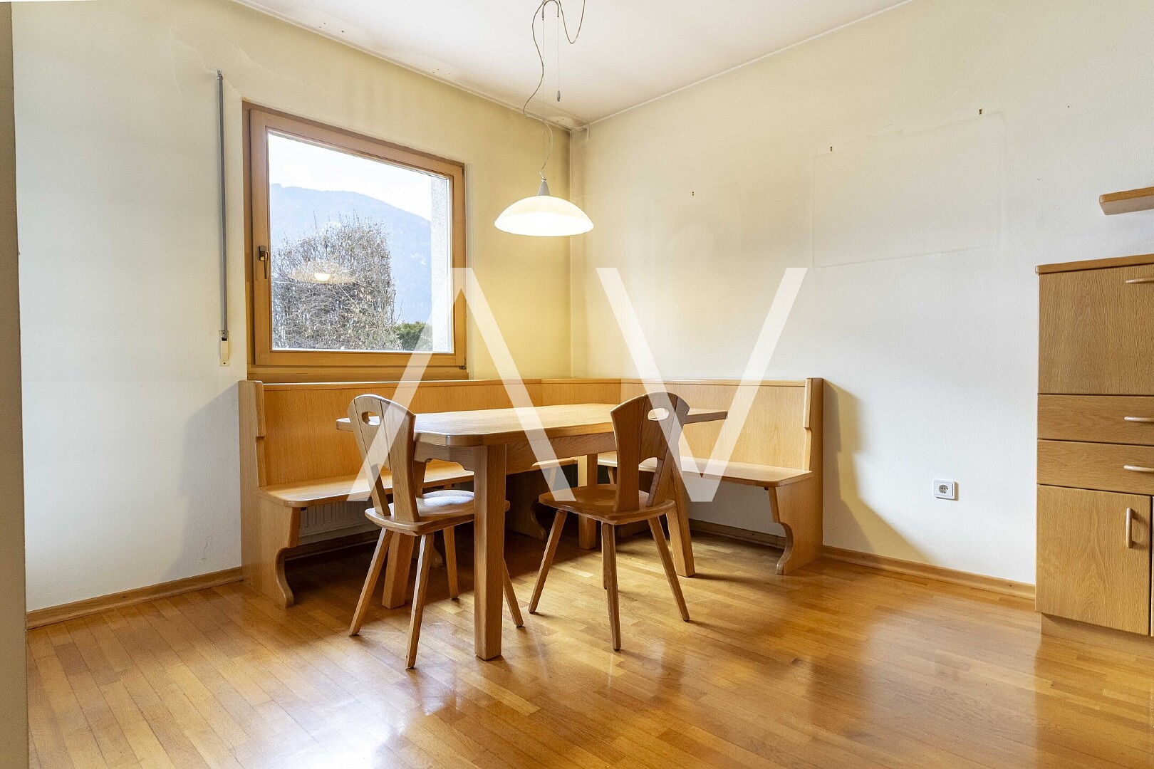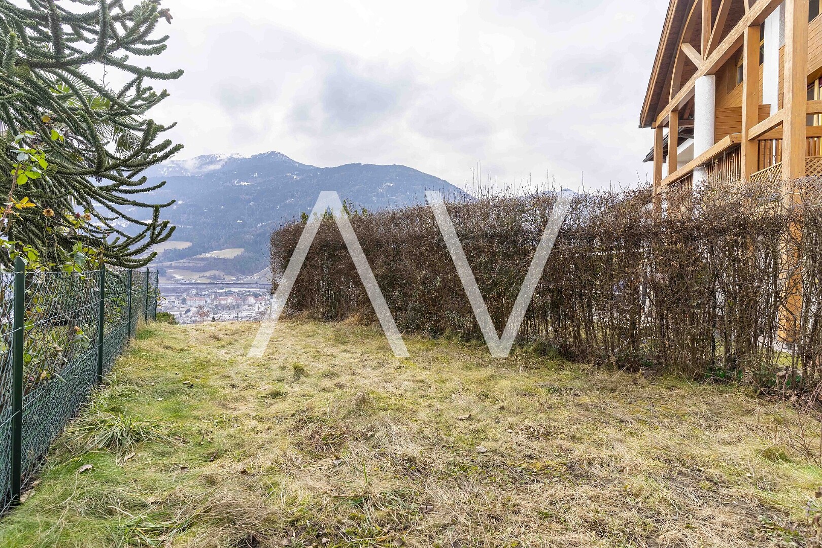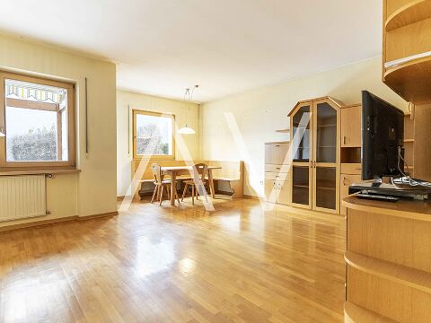 Im Erdgeschoss befinden sich eine Wohnküche, ein Badezimmer sowie das Wohnzimmer, von dem aus man direkten Zugang zur Terrasse mit angrenzendem Garten hat, der zum Entspannen und Verweilen im Freien einlädt.