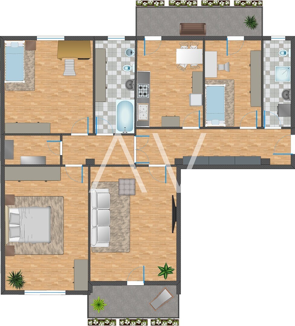 Die Wohnung besteht aus drei Schlafzimmern, einem hellen Wohnzimmer und einem zentralen Flur. Die separate Küche bietet ausreichend Platz für eine gemütliche Essecke. Zwei kürzlich renovierte Badezimmer sorgen für Komfort und Praktikabilität für die ganze Familie und Gäste. Zwei Balkone laden zu entspannenden Momenten mit Blick über die Dächer der Stadt bis zu den Dolomiten ein – ein beeindruckendes Panorama für den Alltag. Ein Abstellraum und ein Keller runden das Angebot ab und bieten zusätzlichen Stauraum.