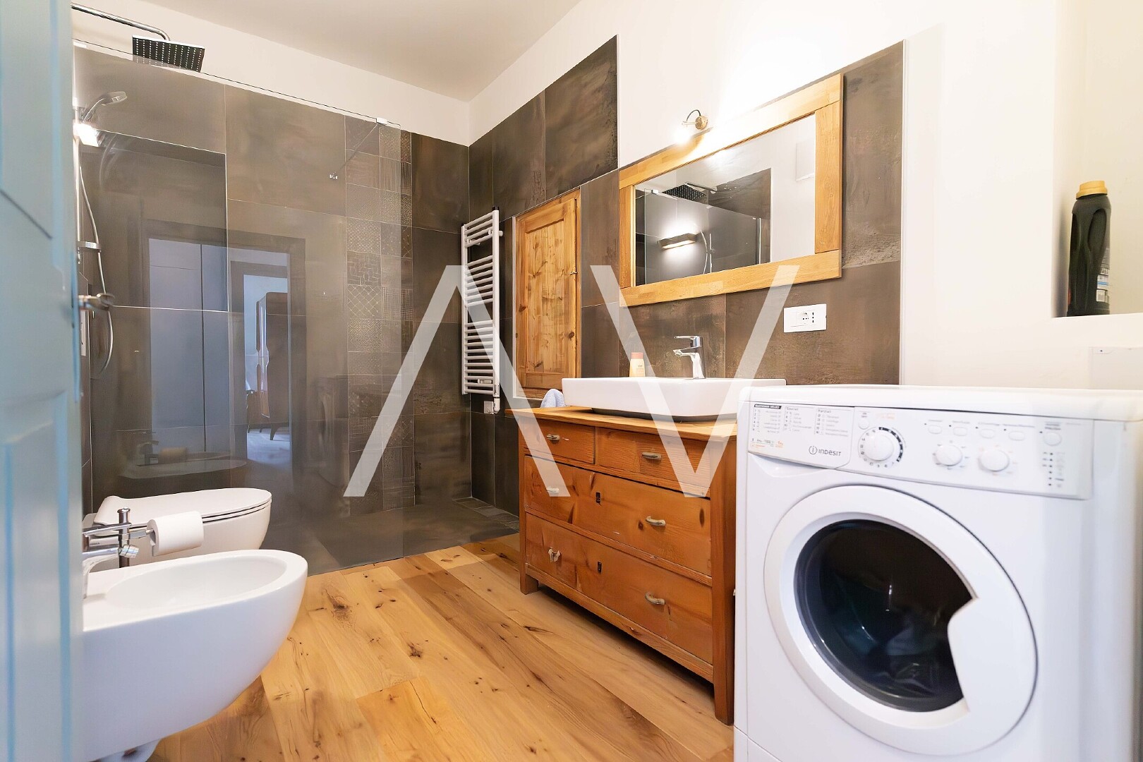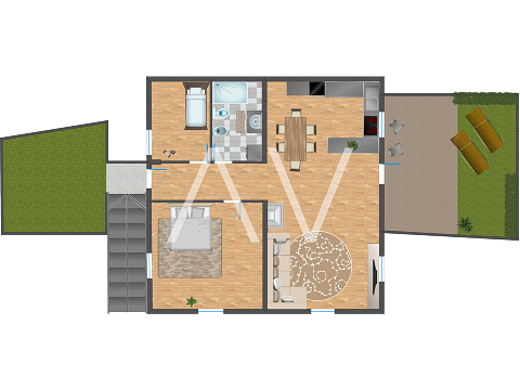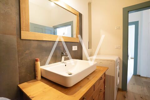 Die Wohnung besteht aus einer großzügigen Wohnküche, einem Schlafzimmer, einem Büro sowie einem Badezimmer. Bei der Renovierung wurde besonderer Wert darauf gelegt, die typischen Elemente des Altbaus – wie die charakteristischen Fenster – stilvoll mit modernen Materialien und Ausstattungen zu kombinieren.