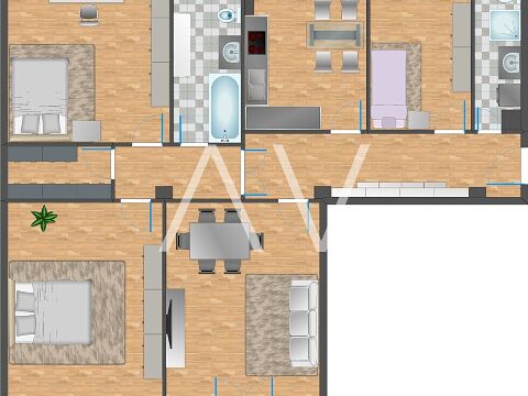 L’immobile si distingue per una distribuzione degli spazi generosa. Tre camere da letto, un soggiorno luminoso e un corridoio centrale offrono soluzioni ideali per famiglie e coppie. La cucina separata dispone di spazio sufficiente per un’area pranzo e si presta perfettamente all’uso quotidiano.