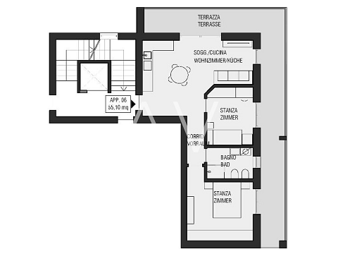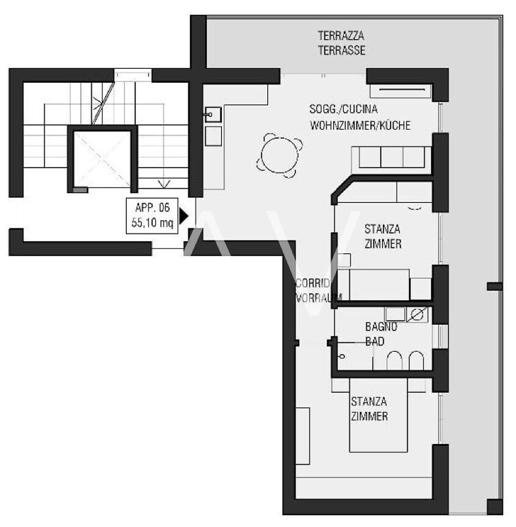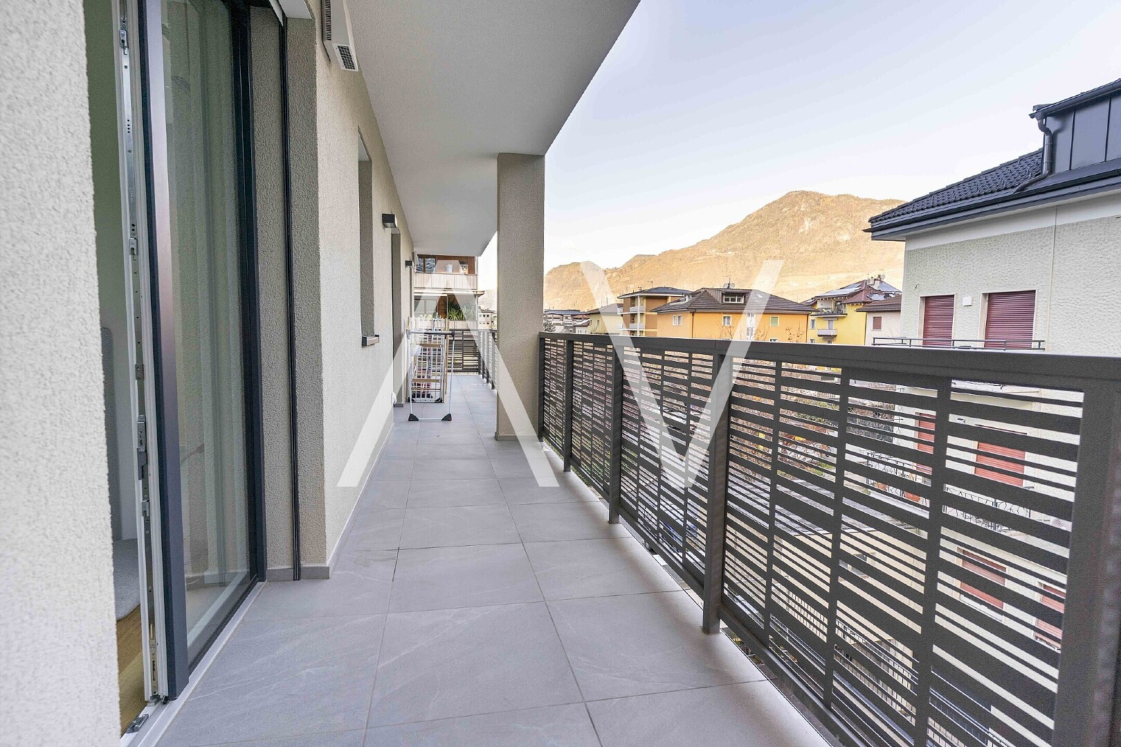 Moderno trilocale in vendita al secondo piano di un edificio nuovo ultimato nel 2024 a Bolzano con una superficie netta di circa 55 metri quadrati. La terrazza è accessibile da tutti gli ambienti e rende l’appartamento particolarmente luminoso e accogliente. Le grandi finestre garantiscono spazi piacevoli e ben illuminati. Il riscaldamento a pavimento è centralizzato tramite pompa di calore e l’appartamento rientra nella classe energetica CasaClima A Nature. Sono presenti cantina e ascensore e la posizione centrale permette di raggiungere facilmente tutti i servizi della città. È possibile acquistare un garage separatamente.